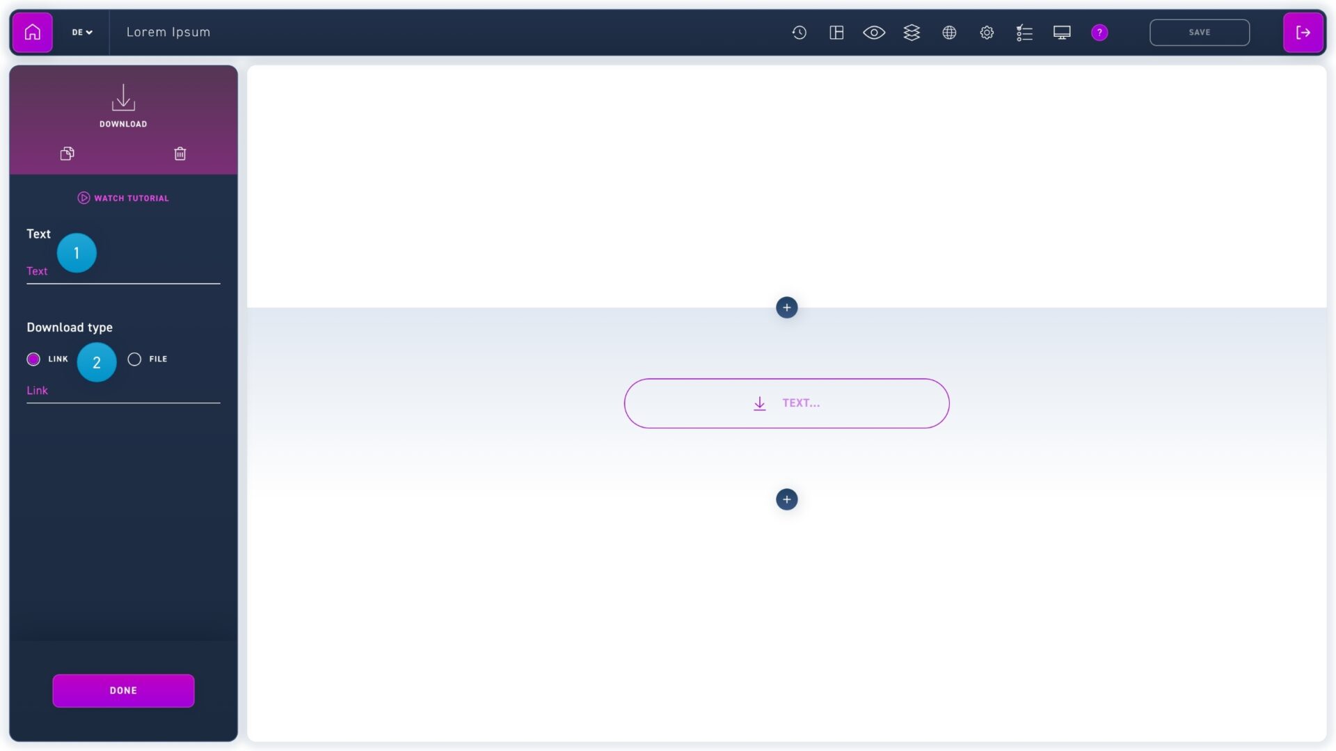 2. Select whether the file is loaded from an external link or from the excelerate media library.