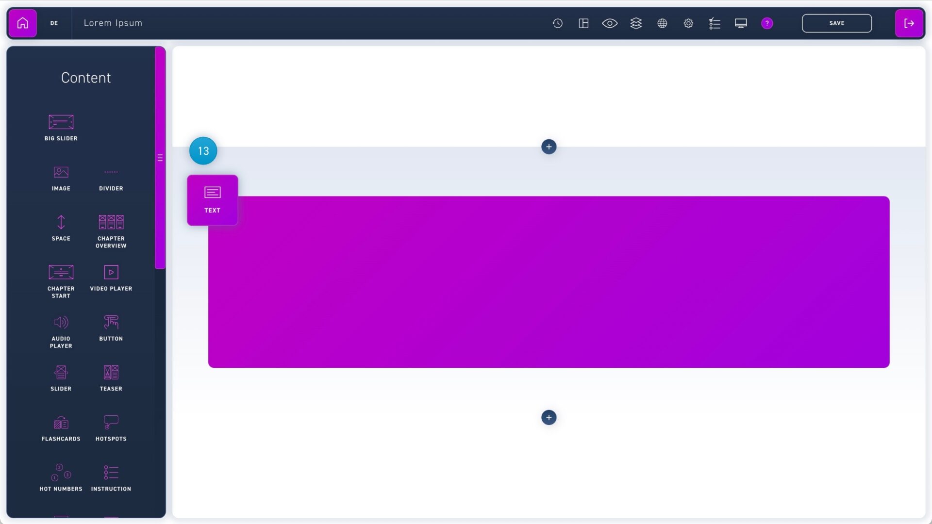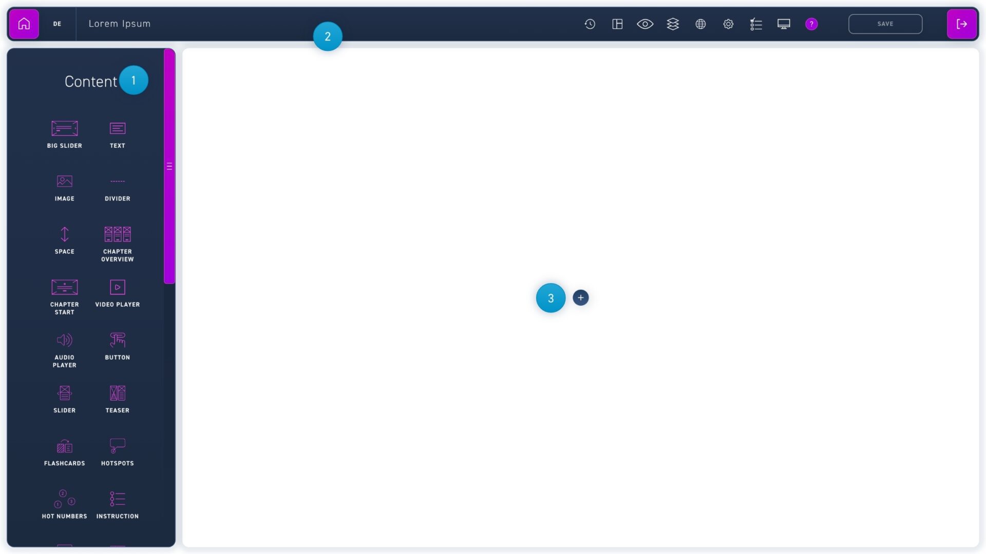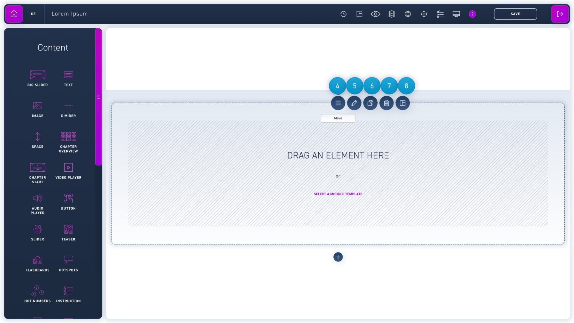 In the following text, the basic actions within excelerate are explained. These basics apply to all of the elements, regardless of their type.