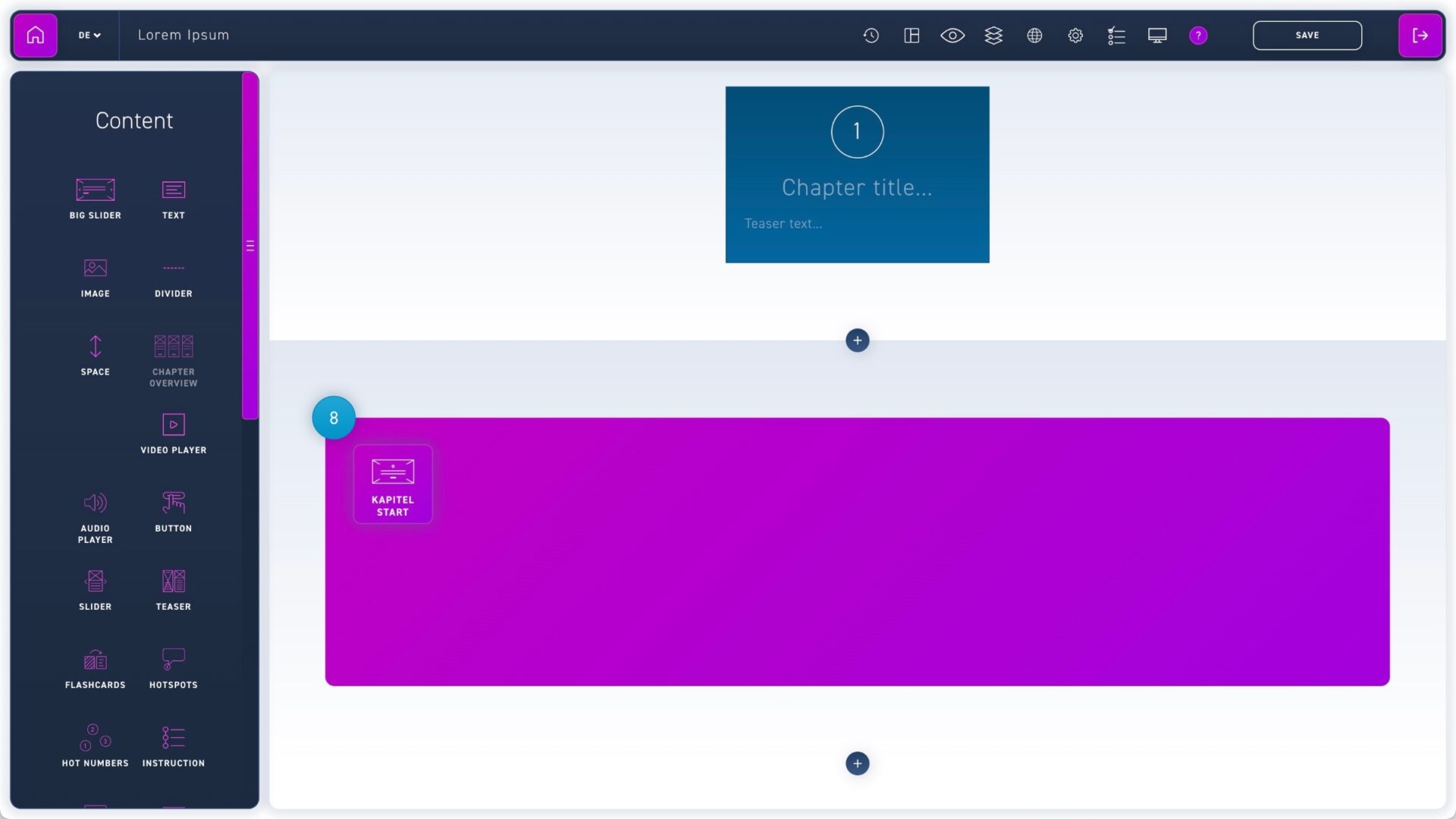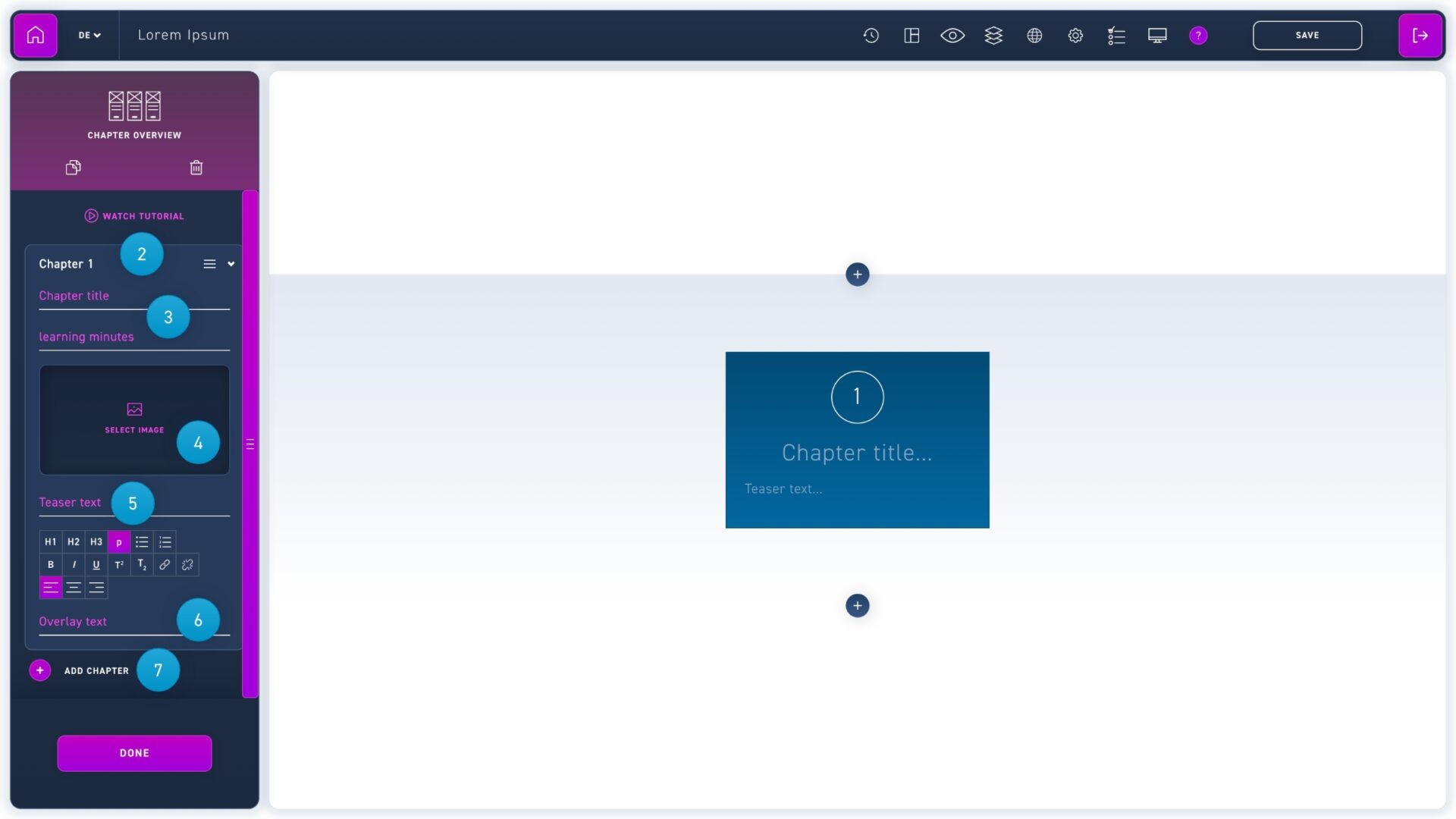 Enter the teaser text. It will be displayed in the chapter overview and the chapter slide.