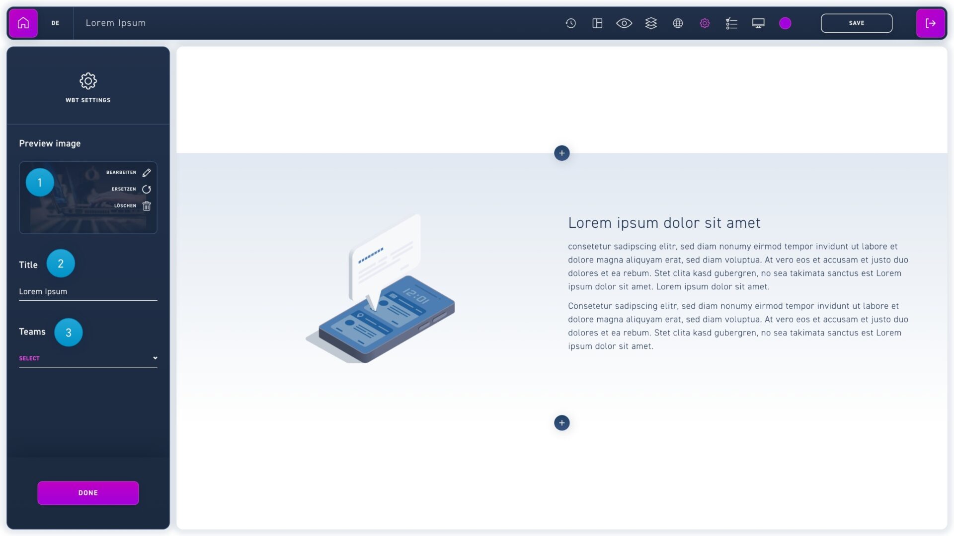 1. Select a preview image. This image will only be displayed in the excelerate WBT overview.